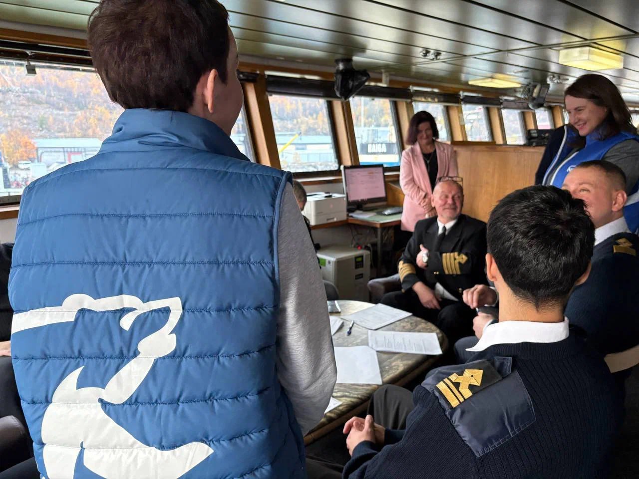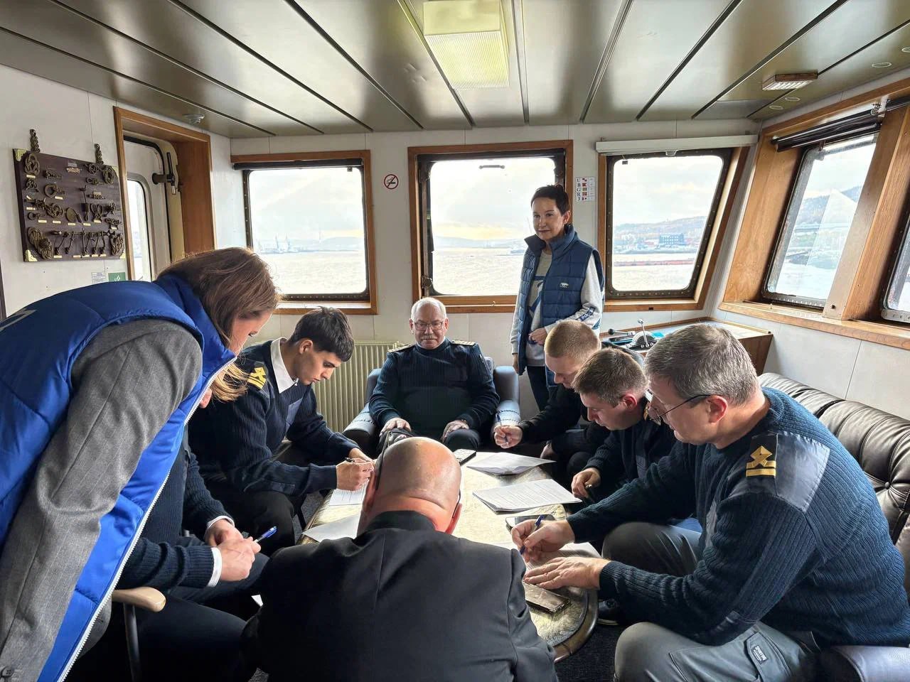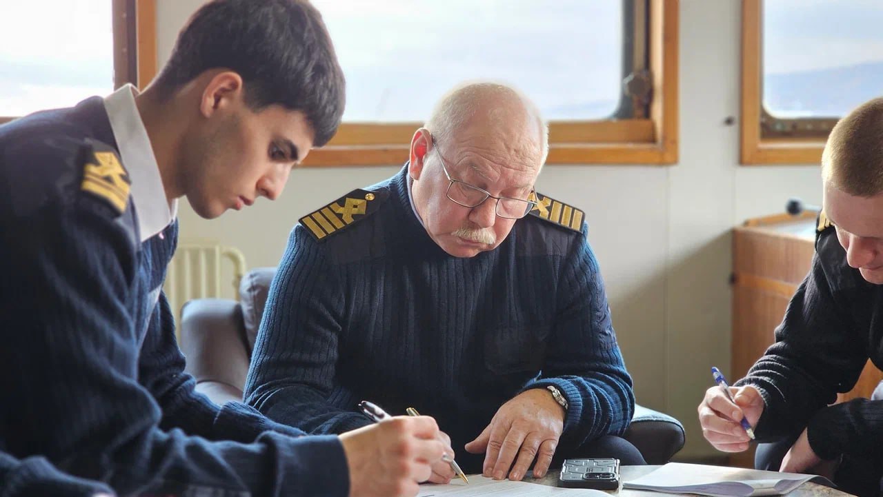 Экипаж рыболовного судна «Кемь» пронизан духом наставничества, связи поколений. Александр Буторин в профессии 46 лет, из них 39 лет – капитаном. «Море – это моя жизнь и мое призвание. Мы принимаем участие в агродиктанте впервые. Неожиданно, но интересно, особенно полезно для молодежи», — прокомментировал он.