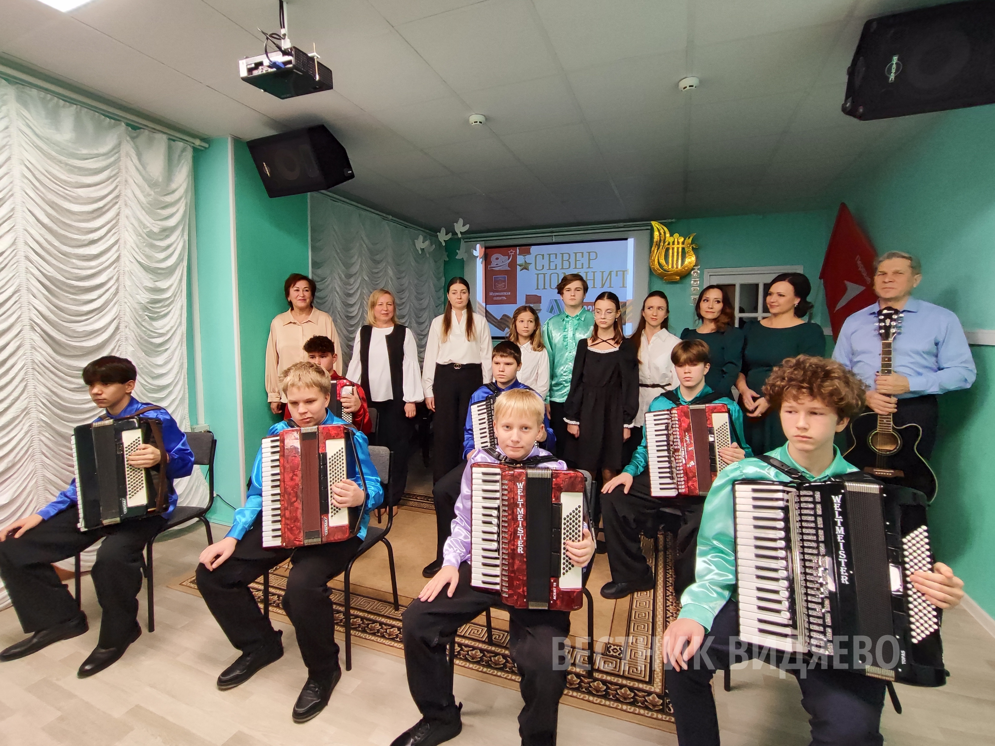 Юные музыканты, выпускники, педагоги детской музыкальной школы и дошкольного учреждения посвятили подвигу и героизму защитников Заполярья концертную программу.