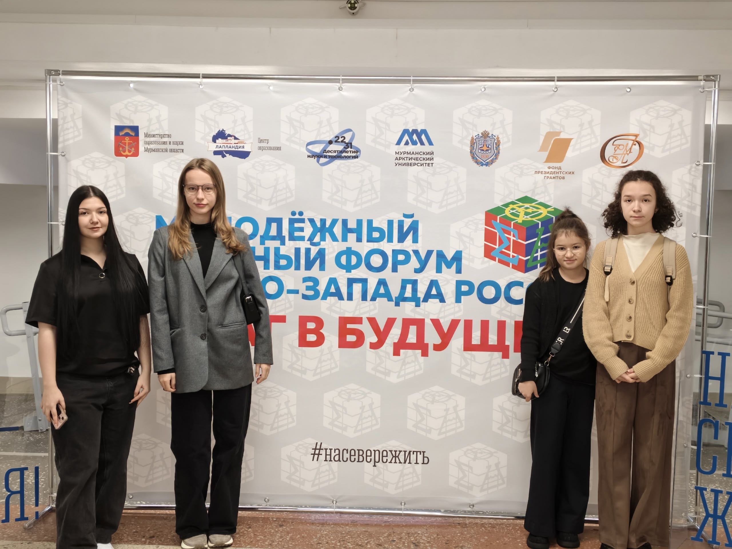 Участниками форума стали и учащиеся средней общеобразовательной школы ЗАТО Видяево: одиннадцатиклассницы Алина Ярковая и Ксения Пантюхова (научный руководитель — учитель русского языка и литературы Анастасия Лепина), ученица 7б класса Виктория Хоанг (руководитель — учитель английского языка Юлия Савельева) и юниор из 4б Софья Глухова под руководством учителя начальных классов Татьяны Балабанчик.