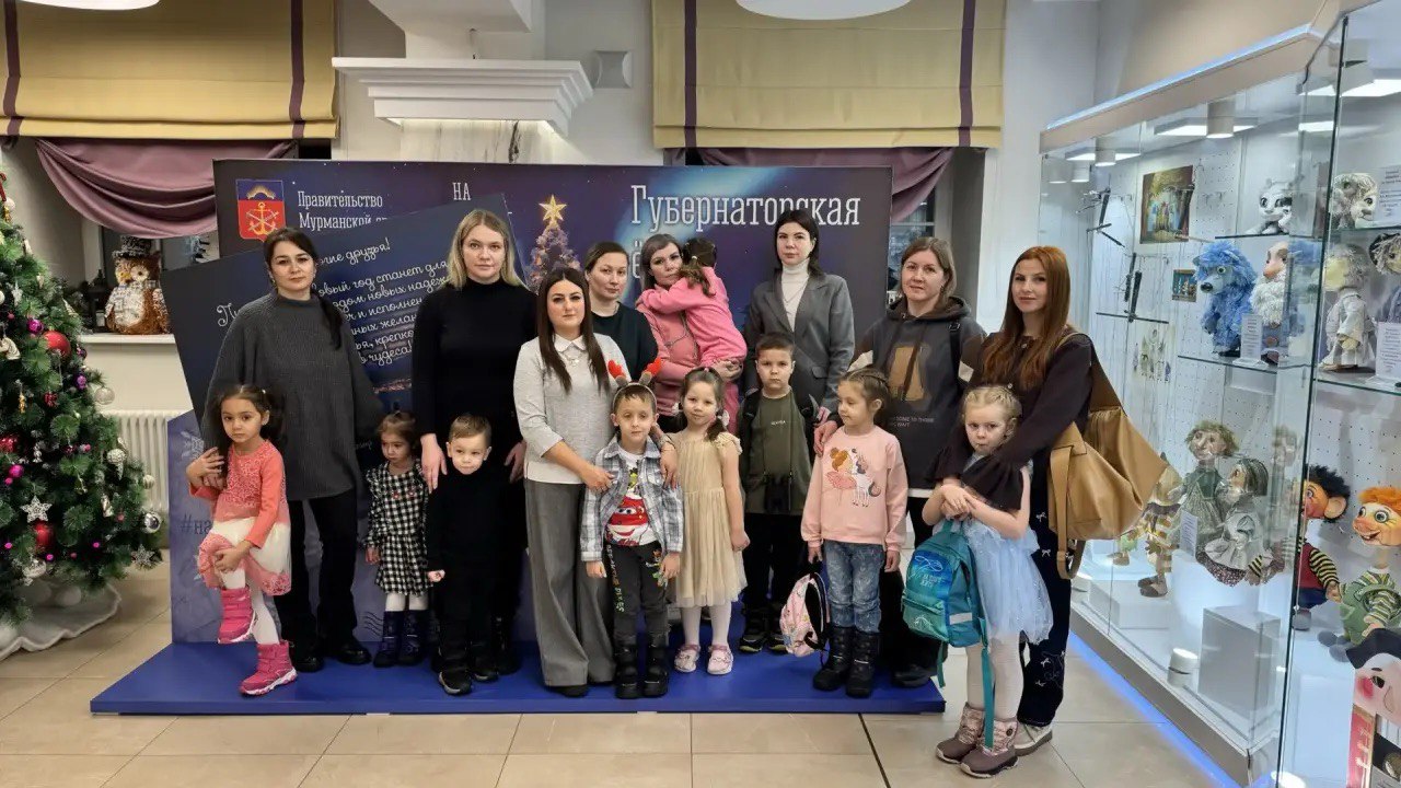 Новогодний марафон Губернаторских ёлок в этом году завершили праздничные показы спектакля «Любопытный слонёнок» с новогодней интермедией в Мурманском областном театре кукол. Среди зрителей — видяевские дошкольники вместе с родителями.
