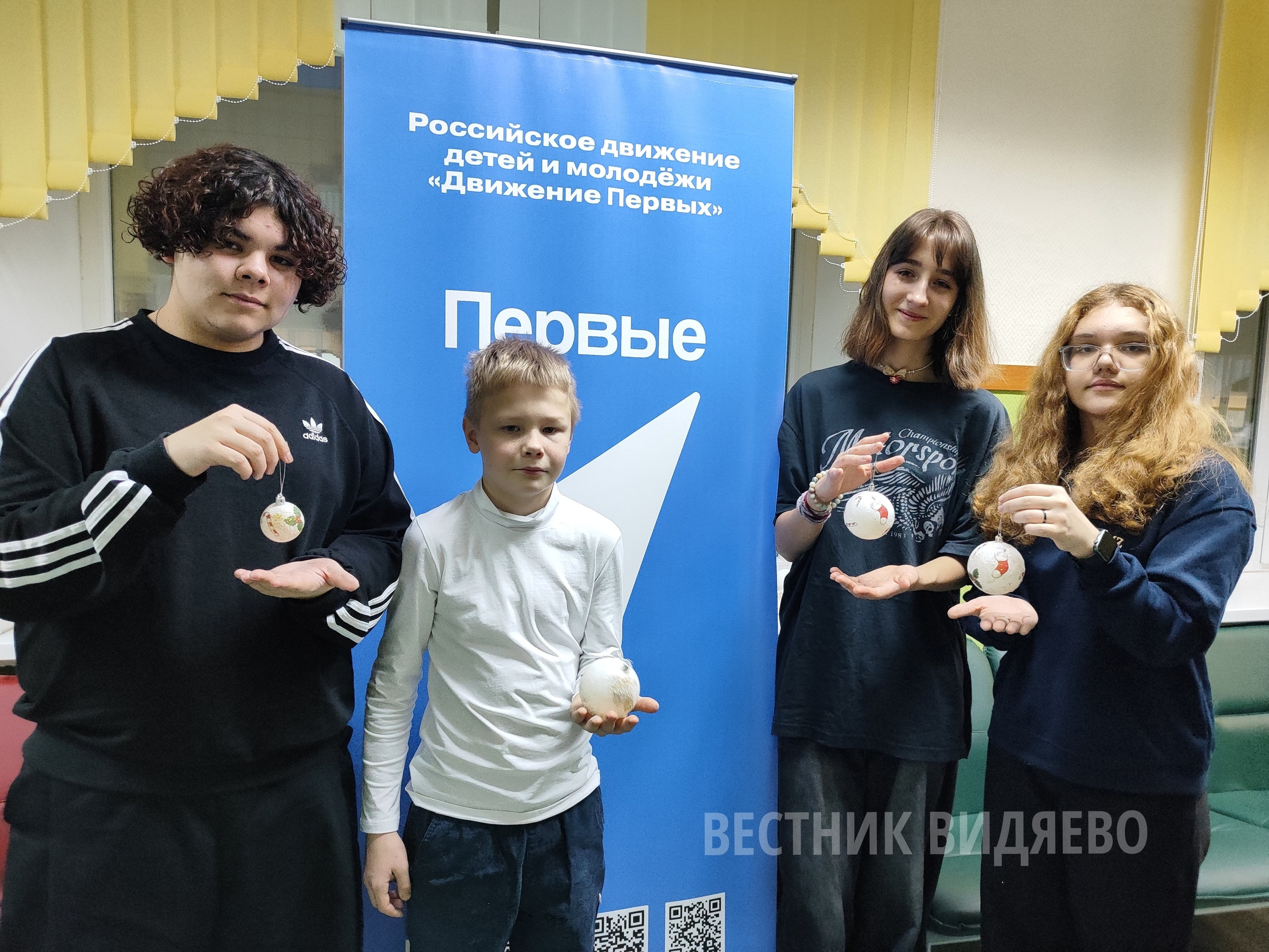 Здесь с активистами «Движения Первых» и советником директора по воспитанию, куратором первичного отделения Первых Анжеликой Яскевич учащиеся создавали авторские ёлочные украшения.
