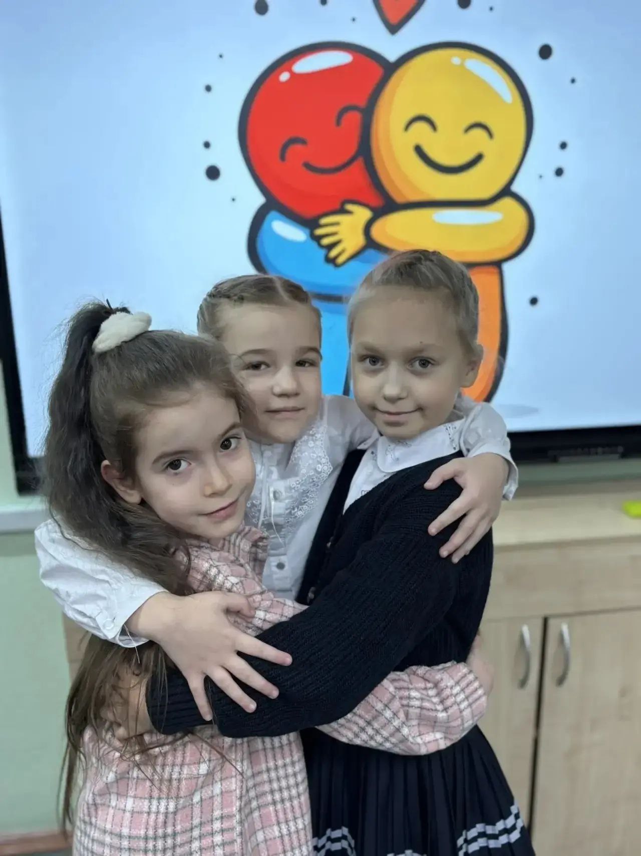Вместе с Первыми они приняли участие в «обнимательном» квесте, сделали фетровые сердечки и подарили их друзьям. Самыми зажигательными и тёплыми стали танцевальные флешмоб-объятия. А учащиеся начальной школы также обнимали любимые книги в школьной библиотеке.