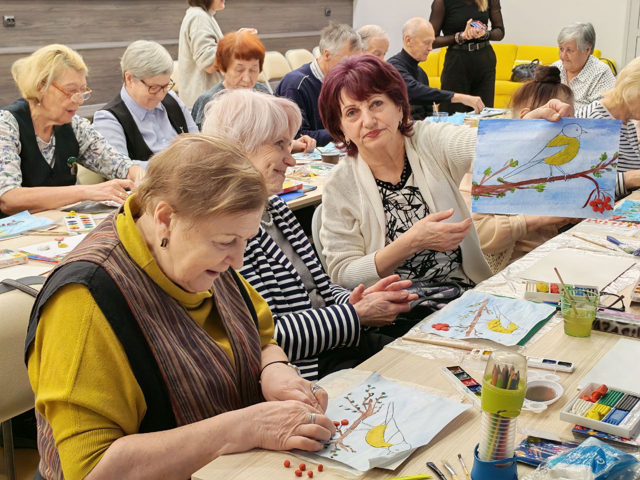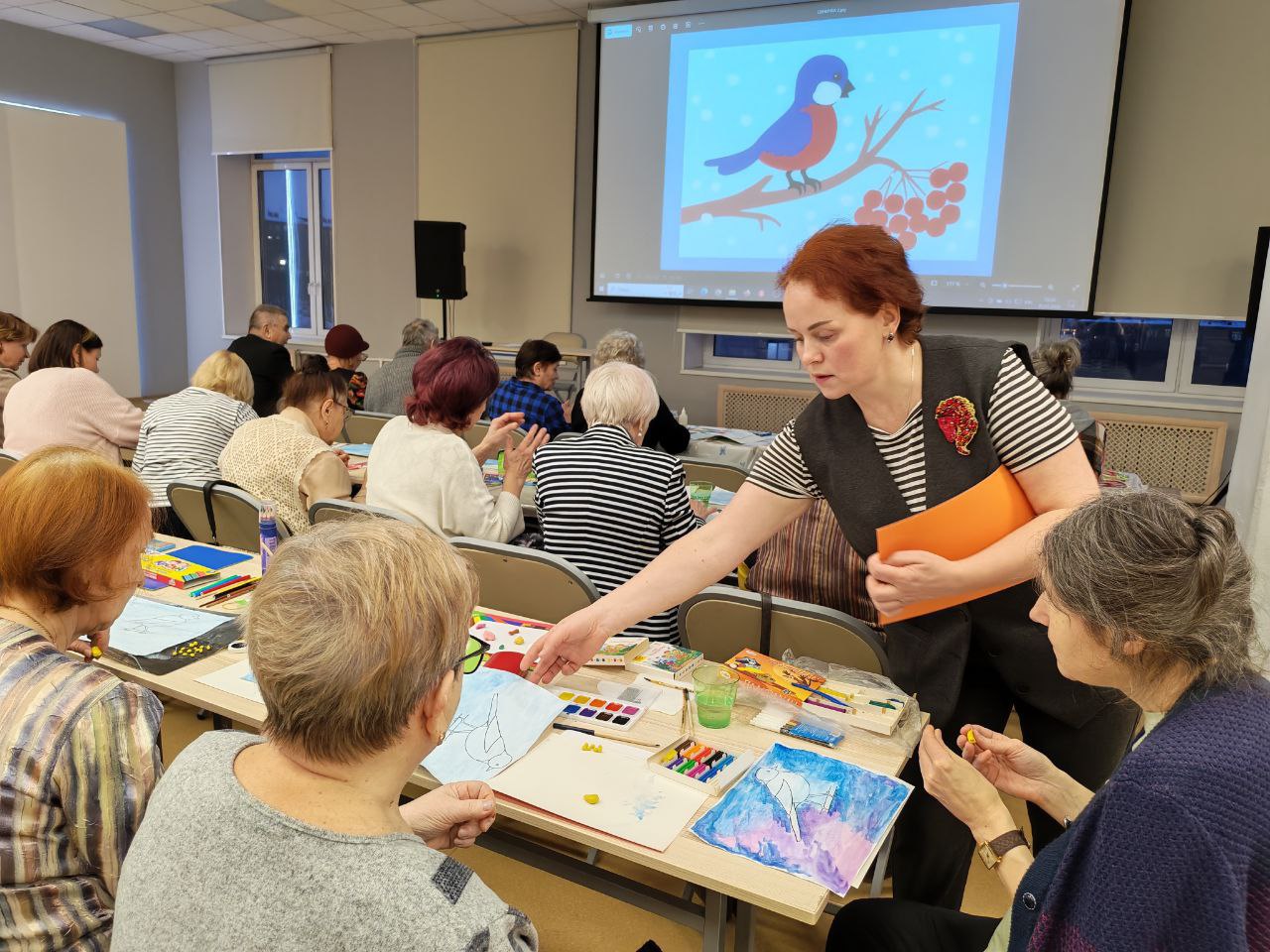 Участники проекта «Старшее поколение» посетили арт-терапевтическое занятие «Синичка» на базе Мурманской областной научной библиотеки.