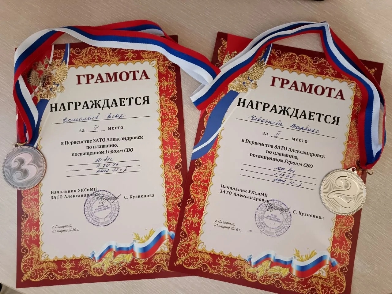 Обучающиеся объединения «Плавание» Центра дополнительного образования «Олимп» под руководством педагогов Екатерины Гвоздевой и Ирины Мельниченко приняли участие в первенстве ЗАТО Александровск по плаванию, посвященном героям специальной военной операции.
