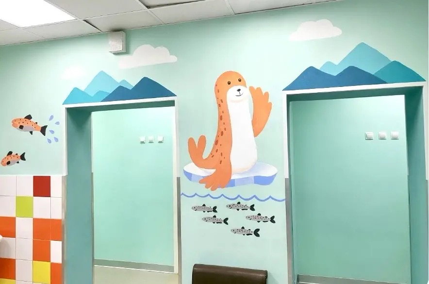 Важным этапом преображения отделения стало художественное оформление стен, которое выполнили студенты второго курса специальности «Графический дизайн» Мурманского колледжа цифровых профессий «Синергия». Под руководством преподавателя И. А. Баулиной молодые дизайнеры украсили холл авторской росписью акриловыми красками. Центральной темой художественной концепции была выбрана природа Арктики. Яркие и легко узнаваемые образы северных птиц и животных сделали пространство больницы более уютным.