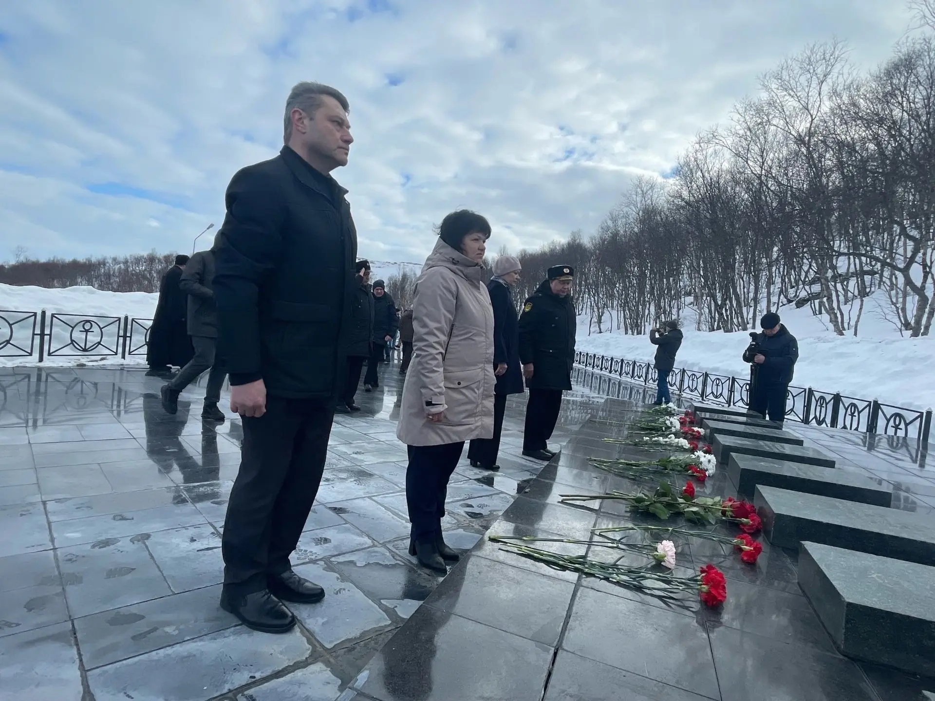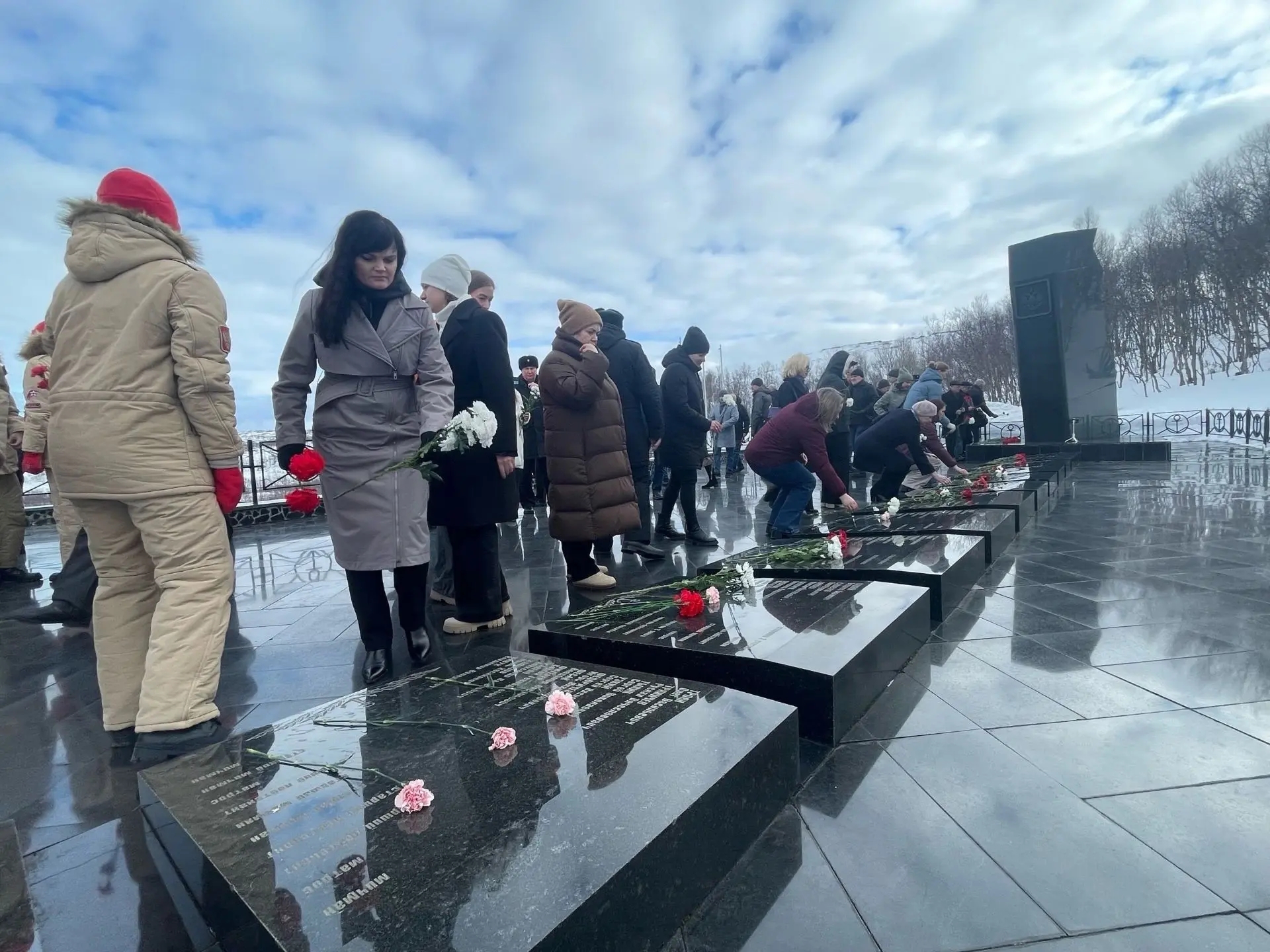 В гарнизоне ЗАТО Видяево цветы к мемориалу «Подводникам, погибшим в океане» возложили командование 7-й дивизии атомных подводных лодок, представители администрации, депутаты, руководители учреждений, юнармейцы и жители гарнизона. В церемонии приняли участие гости поселка — делегация ветеранов подводной лодки «Обнинск».