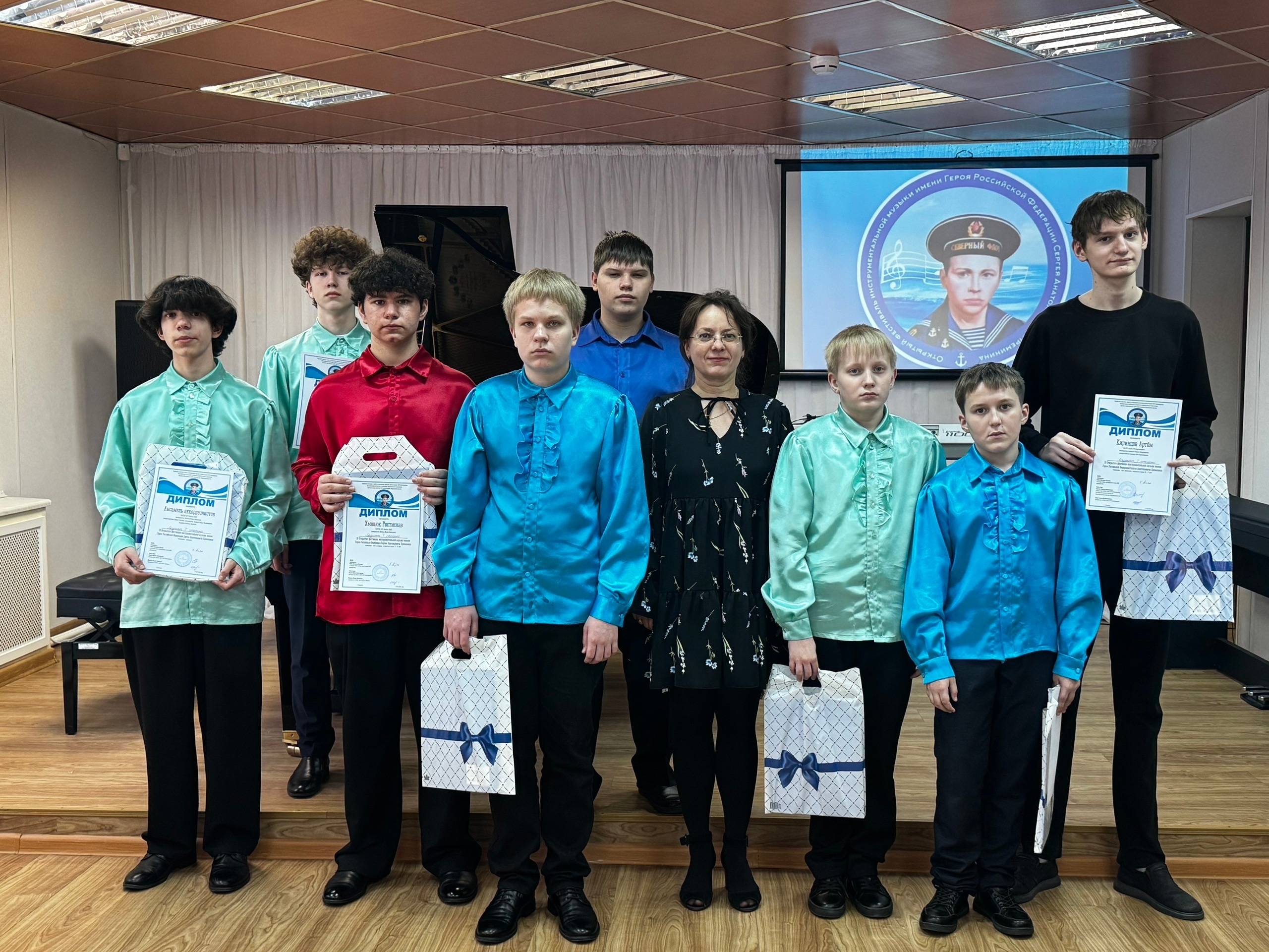 Дипломами за 1 место награждены воспитанники педагога Жанны Шевниной Сергей Колесников, Ростислав Хмелюк и ребята ансамбля аккордеонистов (концертмейстеры Светлана Зайцева и Андрей Криулин).