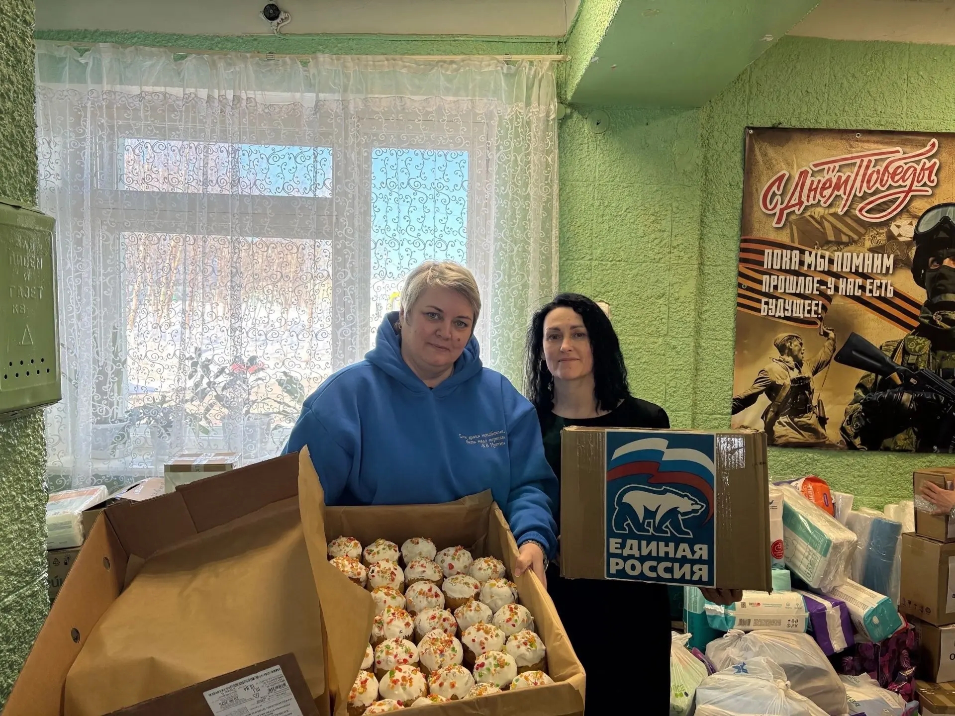 Волонтеры посетили военный госпиталь Заозерска, где проходят лечение военнослужащие, получившие ранения при выполнении боевых задач в зоне СВО. Для бойцов была подготовлена концертная программа, а также переданы куличи, средства личной гигиены, медикаменты, расходные материалы, сладкие наборы к чаю, нательное белье и открытки со словами поддержки.