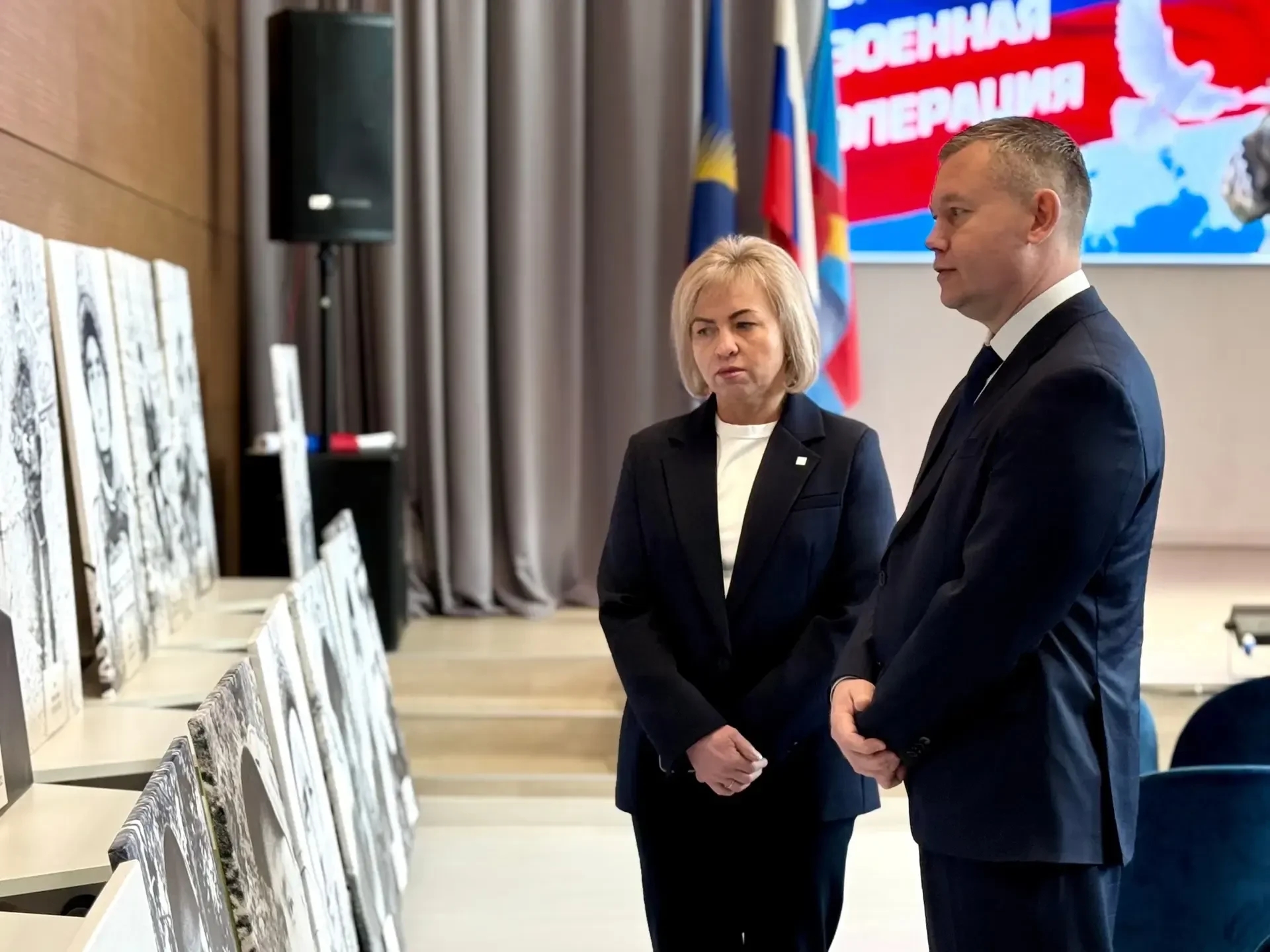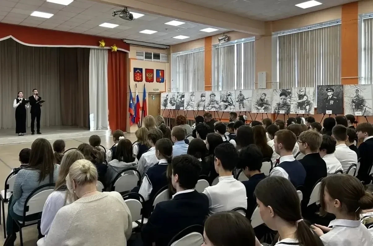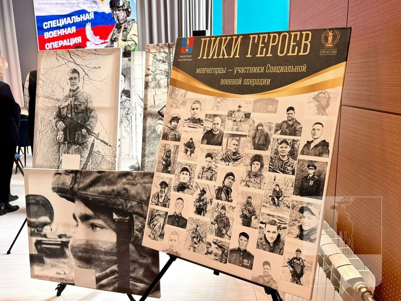 В населенном пункте летной доблести — 27 км на базе школы №10 имени дважды Героя Советского союза Бориса Сафонова прошло торжественное открытие передвижной выставки, посвященной мончегорцам — Героям специальной военной операции.